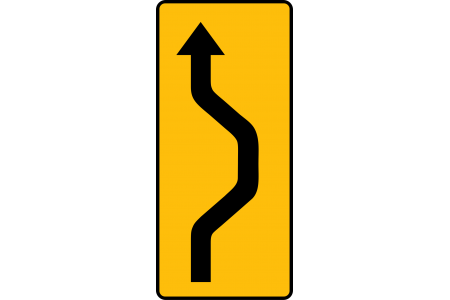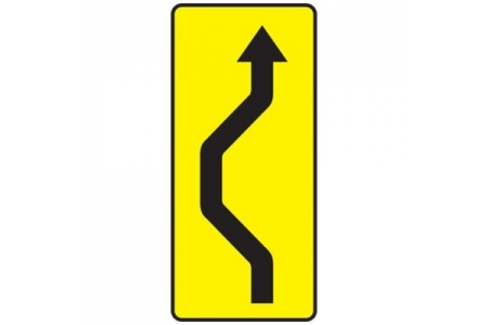 T-18a - zmiana przebiegu drogi lub kierunku następuje najpierw w prawo, a potem w lewo,