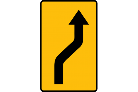 T-18c - zmiana przebiegu drogi lub kierunku następuje w prawo,