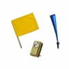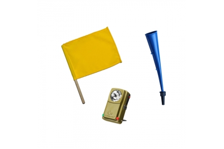 Wyposażenie sygnalisty kolejowego - zestaw składający się z trąbki sygnałowej, chorągiewki sygnałowej oraz latarki ręcznej płaskiej trzykolorowej. Oferowany asortyment dla sygnalisty kolejowego jest niezbędnym wyposażeniem każdego pracownika, którego głównym zadaniem jest ostrzeganie i dbanie o bezpieczeństwo osób pracujących na torach kolejowych.